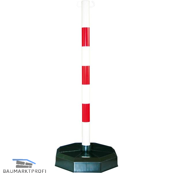 Zur Absperrung im Innen- und Außenbereich. Einfache Handhabung, da selbststehend, hohe Standfestigkeit durch großdimensionierten Kunststofffuß.
