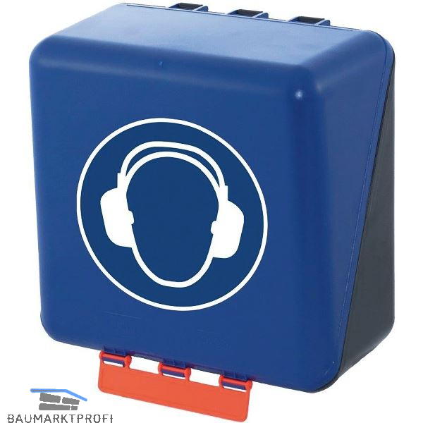Behälter aus ABS-Kunststoff zur sicheren und sauberen Aufbewahrung der Gehörschutzartikel. Mit Gebotszeichen und patentierter Kippöffnung zur schnellen und einfachen Entnahme.