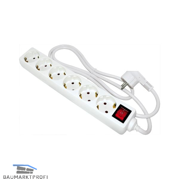 BACHMANN Steckdosenleiste -6 Steckdosen + Schalter, 1500 mm Kabel, weiß
