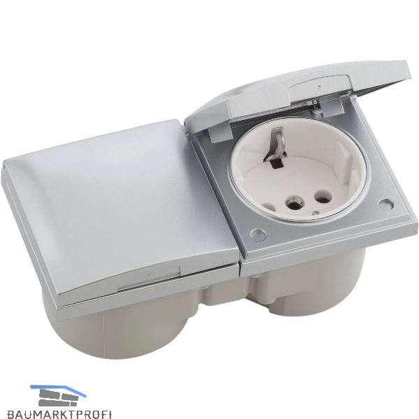 BERKER Integro Flow Doppelsteckdose, Deckel chrom matt, Steckdose weiß