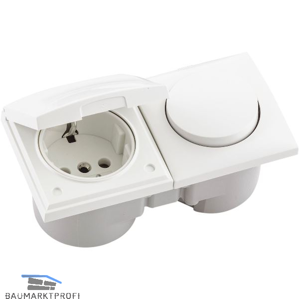 BERKER Integro Flow Schalter/Deckel polarweiß glänzend + Steckdose polarweiß