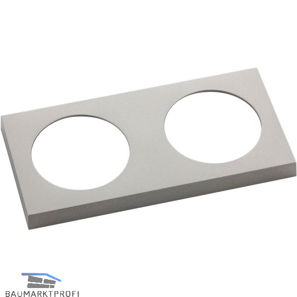 Type: Berker Integro Pure Ausführung: 2-fach Länge (mm): 119 Breite (mm): 59,5 Höhe (mm): 9 Material: Kunststoff Farbe: Edelstahl Effekt Farbcode: ähnlich RAL 9022