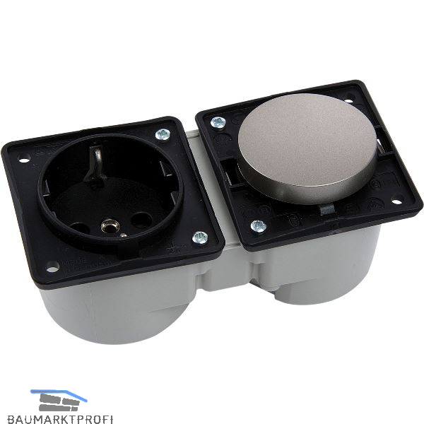 Dieses Schalter- Steckdosenelement kann mit allen Berker Integro Flow oder Pure Rahmen bestückt werden.
