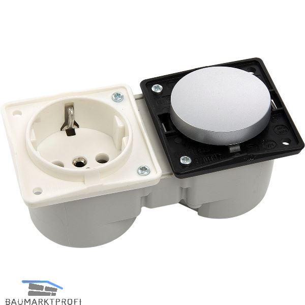 Dieses Schalter- Steckdosenelement kann mit allen Berker Integro Flow oder Pure Rahmen bestückt werden.