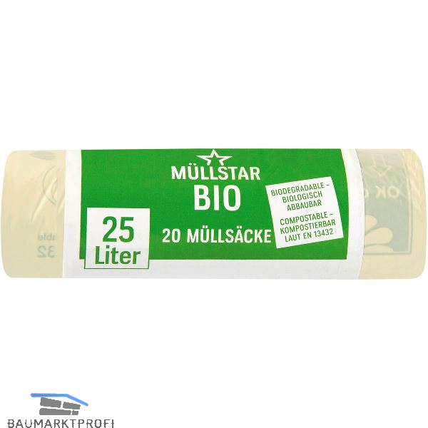 Bio Müllsäcke ohne Griff 25 Liter, 14 my 500 x 500 mm ohne Zugband