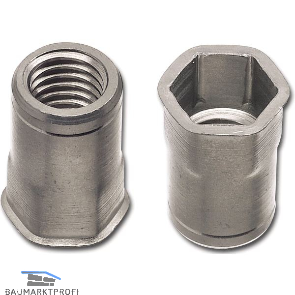 Blindnietmutter kl. Senkkopf mit Sechskantschaft offen M 8x16,5 Stahl verzinkt