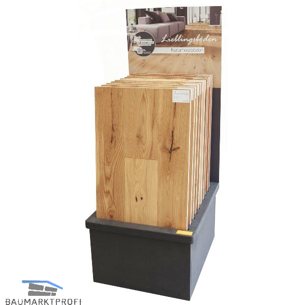 Präsenter mit Platz für 10 Musterplatten aus dem Lieblingsbodenprogramm Parkett.
