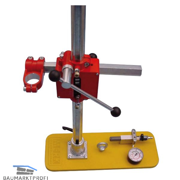 Sauberes und kraftsparendes Bohren durch spezielle Bohrvorrichtung. Diese Kombination erlaubt ein schnelles und sicheres Arbeiten, auch auf der Baustelle. Die Vakuumplatte ermöglicht den vertikalen Einsatz des Gerätes. Als Lufterzeuger reicht ein Kompressor mit mindestens 180 l/min Leistung bei 5 bar Druck aus.