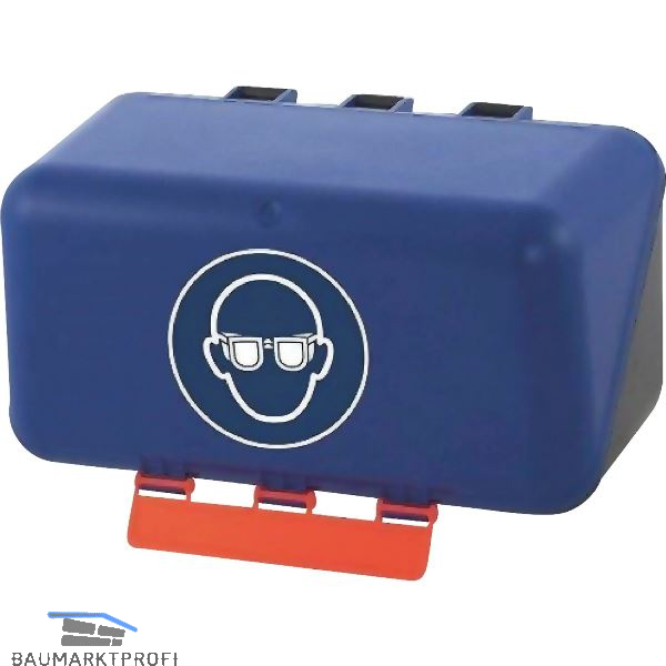 Behälter aus ABS-Kunststoff zur sicheren und sauberen Aufbewahrung einer Bügelbrille. Mit Gebotszeichen und patentierter Kippöffnung zur schnellen und einfachen Entnahme.