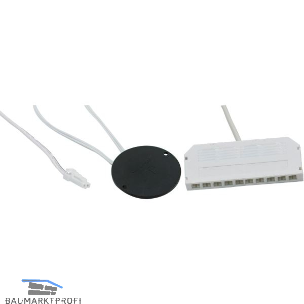 Der Sensor wird zwischen Netzgerät und Leuchte eingesteckt und unsichtbar hinter einer Fläche montiert.