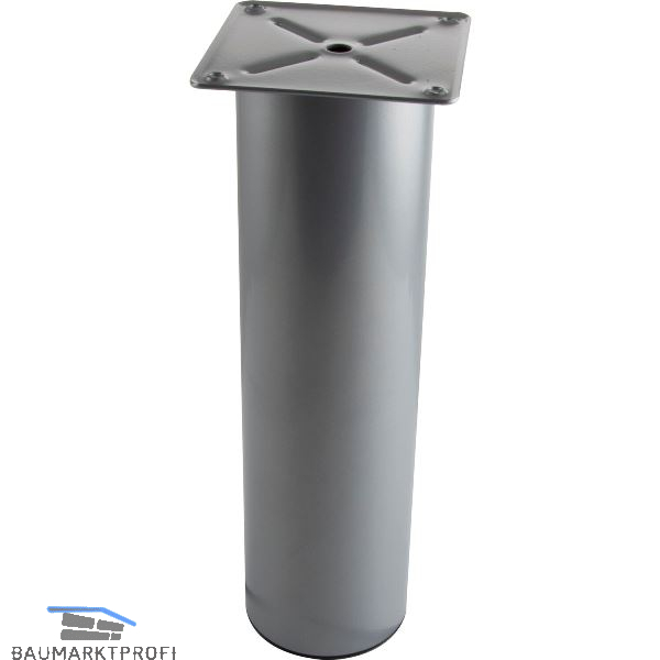 Länge (mm): 290 Ausführung: Fuß ø 80 mm Ausführung 2: mit Anschraubplatte 100 x 100 mm Verstellmöglichkeit: keine Material: Stahl Oberfläche: silber RAL 9006