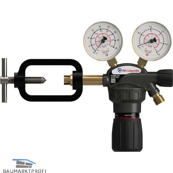 Besitzt leicht ablesbare Manometer und einen exakt einstellbaren Regelknopf für den Arbeitsdruck. Für Azetylen.