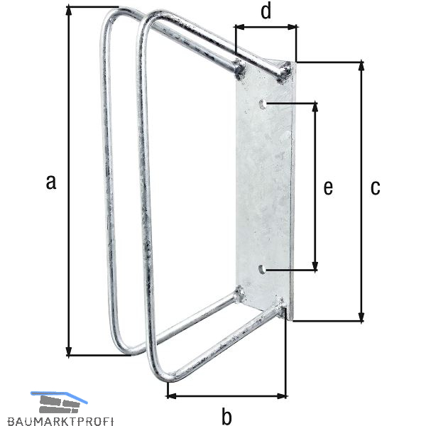 Feuerverzinkt, mit Platte zum Andübeln, zur Befestigung an der Wand.