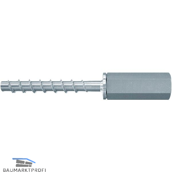 - die Ausführung der Betonschraube mit Stufengewinde bietet höchste Flexibilität bei der Montage von Gewindestangen bzw. Verbindungsstücken.