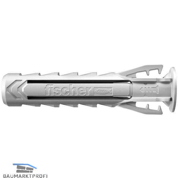 Der fischer Spreizdübel SX Plus ist durch seine 4-fach Spreizung der Spezialist für Vollbaustoffe wie Beton, Kalksandstein und Mauerwerk. Die speziellen Fixierflügel sorgen für eine Vorfixierung der Schraube, wodurch diese bei Überkopf Anwendungen nicht zusätzlich festgehalten werden muss. Diese Schraubenfixierung ermöglicht dem Anwender einen flexiblen und komfortablen Setzvorgang. Der flexible Dübelrand verhindert zudem ein Tieferrutschen des Dübels in das Bohrloch für eine sichere Montage. Das hochwertige Material aus Nylon garantiert dauerhaft sicheren Halt in einer Vielzahl von Voll- und Lochbaustoffen.