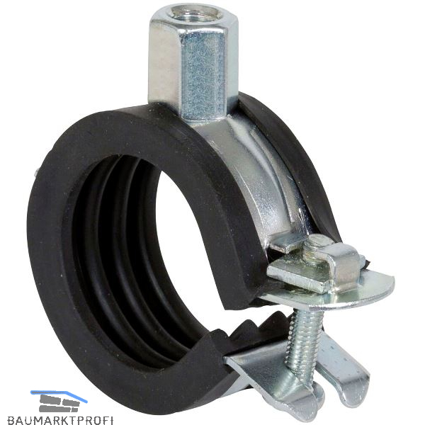 Die fischer Gelenkrohrschelle FGRS Universal ist eine Rohrschelle mit einer Schraube aus galvanisch verzinktem Stahl der Werkstoffgüte DD11 mit einem Kombi-Anschlussgewinde M8 /M10. Der Schnellverschluss und das Kombi-Anschlussgewinde ermöglichen eine einfache und zeitsparende Montage. Das Einrasten des Schnellverschlusses garantiert die sichere Justage des Rohres ohne ein Aufspringen der Schelle. Damit können Rohrleitungen mit Gewindestange oder Stockschraube sicher im Innenbereich befestigt werden. Die Rohrschelle entspricht mit einer chlor- und silikonfreien Schalldämmeinlage den Anforderungen der DIN 4109.