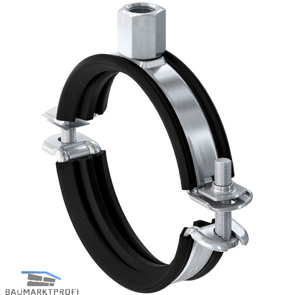 Die fischer Rohrschelle FRS-L Universal ist eine zweischraubige Rohrschelle aus galvanisch verzinktem Stahl der Werkstoffgüte DD11 mit Kombi-Anschlussgewinde M8/M10 und einem Schallschutznachweis. Der Schnellverschluss garantiert eine einfache und zeitsparende Montage. Die Ausführung mit zwei Schrauben ermöglicht die optimierte Anpassung an den Rohraußendurchmesser. Zusammen mit dem Kombi-Anschlussgewinde erhöht dies die Flexibilität. Damit können Rohrleitungen mit Gewindestange oder Stockschraube entsprechend den Brandschutzanforderungen der Feuerwiderstandsklasse R 120 und der MLAR im Innenbereich befestigt werden. Die Rohrschelle entspricht mit einer chlor- und silikonfreien Schalldämmeinlage den Anforderungen der DIN 4109.