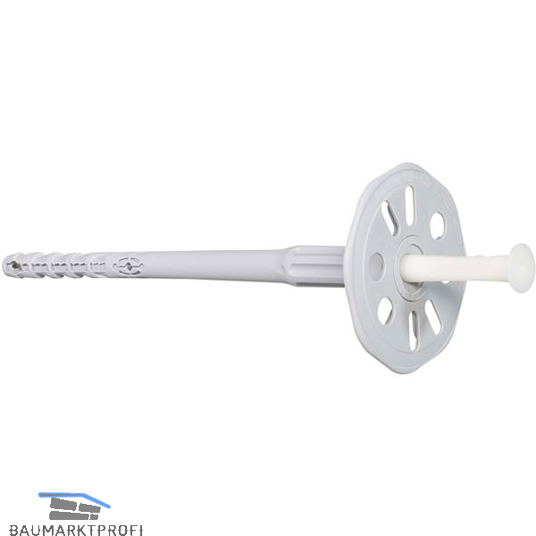 Der Putzdübel FIF-PN ist ideal, um druckfeste Dämmstoffe bis 190 mm Dicke in der Putzfassade wie Polystyrolplatten, Holzwolle-Leichtbauplatten und PU-Hartschaumplatten in Beton, Voll- und Lochstein sicher zu befestigen. Der fischer Putzdübel FIF-PN besteht aus einer grauen Dübelhülse mit aufgestecktem oktogonalem Teller und einem Kunststoffnagel. Der FIF-PN wird mit dem Hammer eingeschlagen. Das spart Zeit und Kosten. Die integrierte Einschlagsperre vermeidet das vorzeitige Aufspreizen und ermöglicht eine störungsfreie Montage. Der glasfaserverstärkte Kunststoff-Nagel reduziert die Transmissionswärme und verhindert Abzeichnungen an der Putzoberfläche.