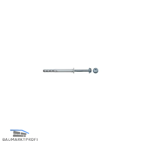 Mit vormontierter 6-kant-Sicherheitsschraube und angeformter Scheibe sowie ausgepragtem, flachem Dübelrand.