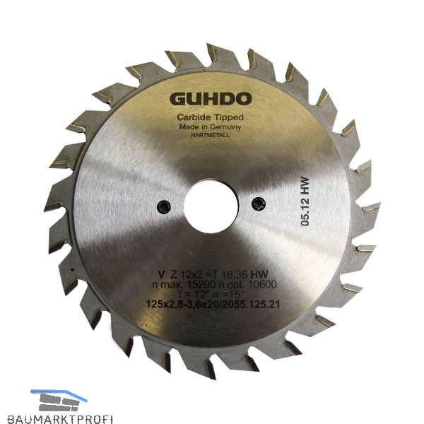 GUHDO HW-Ritzkreissägeblatt für diverse Maschinen 125x2,8-3,6x20 mm Z2x12 V/FZ