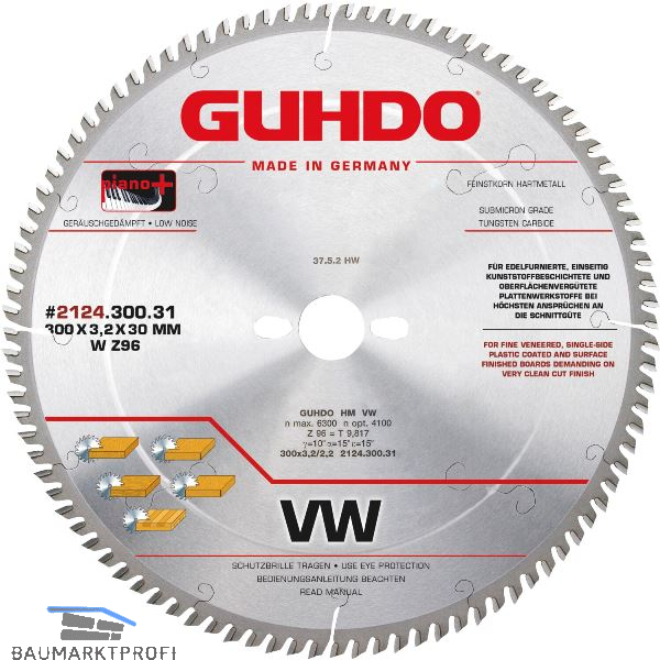 - Für edelfurnierte, einseitig kunststoffbeschichtete und oberflächenvergütete Plattenwerkstoffe bei höchsten Ansprüchen an die Schnittgüte, Sperrholz, Multiplex