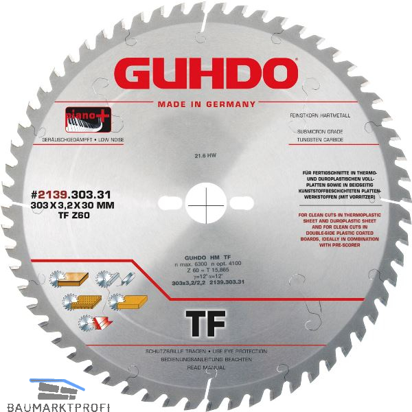 - Für Fertigschnitte in Laminat, MDF, Gips-, Recycling-, Corianplatten und Plexiglas, Aluminium
