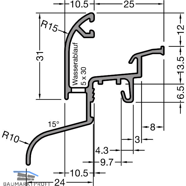 Für Holzfenster ohne Flügelfalz, Falzmaß 25 mm, mit Dichtungsnut für Dichtung D 190 F.