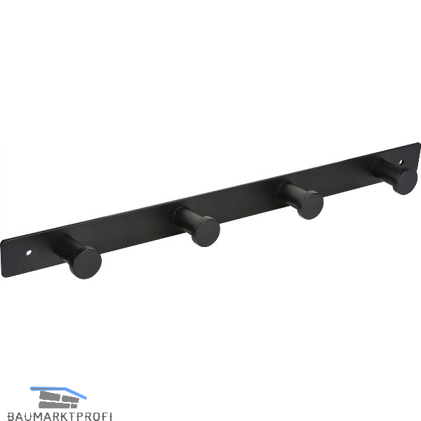 Garderobenleiste Aino mit 4 Haken, Breite 345 mm, Stahl schwarz matt