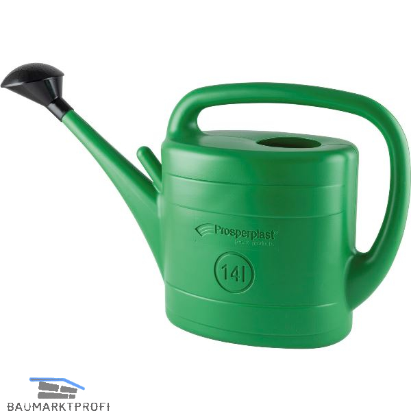 Gießkanne aus robustem Kunststoff, inkl. Sprühkopf und passendem Steckplatz.