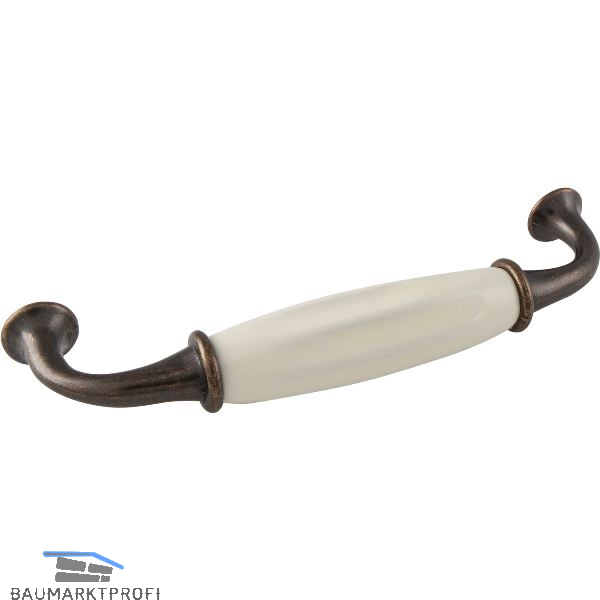 Griff Nysa LA 128 mm, Breite 145 mm, Keramik/ZN elfenbein/bronziert