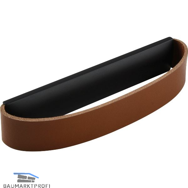 Griff Rollo LA 96, B 150 mm, Leder cognac/Sockel ZN schwarz matt