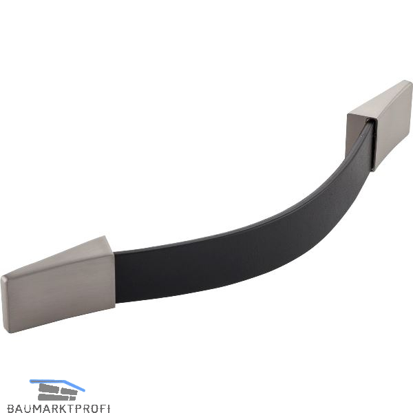 Griff Safari LA 160/192, Breite 224 mm, Leder schwarz/Sockel ZN Edelstahl Effekt