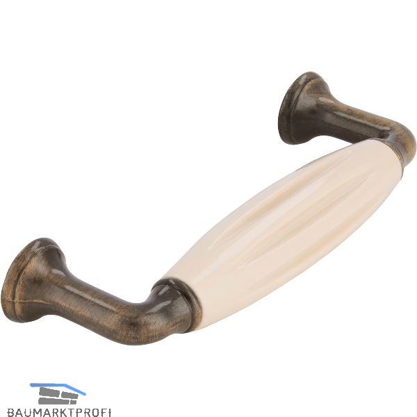Griff Tajet LA 96,Breite 114 mm, Keramik beige/Zinkdruckguss altmessing