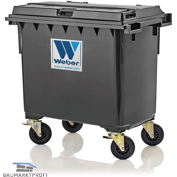 UV-, kälte-, wärme- und chemikalienbeständig. Gestufte Kammleiste, durch Verrippung zusätzlich verstärkt. Vollgummibereifte Schwerlast-Lenkrollen mit 20cm DM. Chip Nest gemäß RAL GZ 951/1.