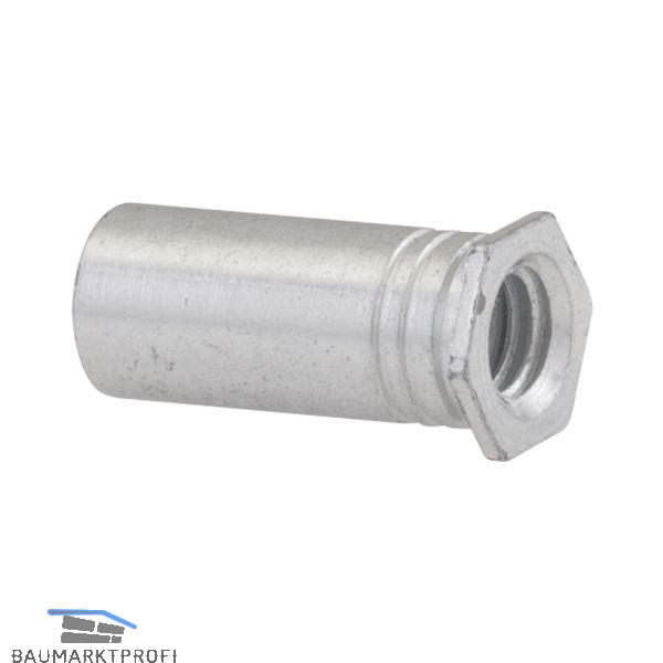 Einpressbuchse für metallische Werkstoffe, bündige Montage, der Sechskant dient als Verdrehschutz.