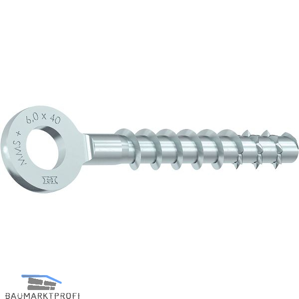 Schraubanker mit Ringöse zur direkten Montage ohne Dübel in gerissenem und ungerissenem Beton sowie Mauerwerk.Produktvorteile
