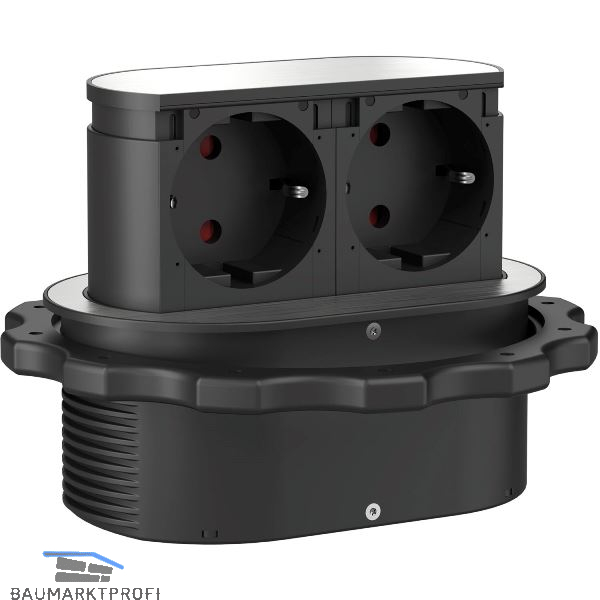 Piccolino vereint zwei Steckdosen auf engstem Raum nebeneinander und ist durch die geringe Einbautiefe von nur 47,5 mm auch für den Einbau über Schubladen geeignet.