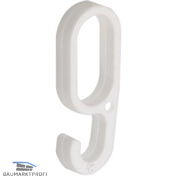 Haken 1a für Oval-Schrankrohr 30 x 15 mm, Kunststoff weiß