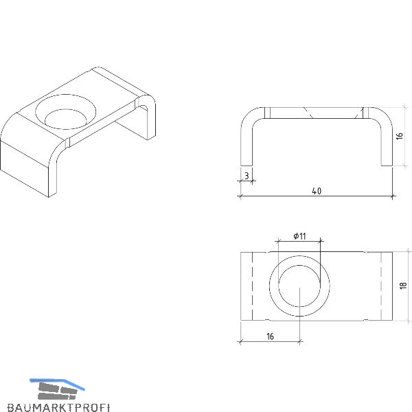 Halteklammer Oberteil für Maschenweite 33 x 11 mm