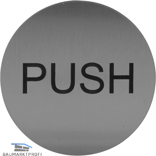 Hinweisschild PUSH, Durchmesser 60 mm, Kunststoff Edelstahl-Effekt