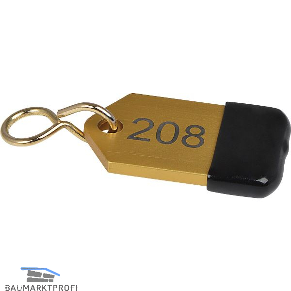 Hotelschlüsselanhänger mit Gummi, Höhe 50 mm, Gravur 1-9999, gold eloxiert