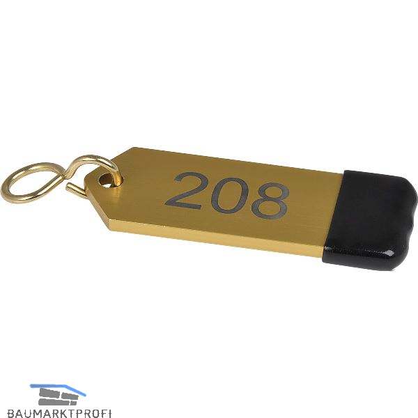 Hotelschlüsselanhänger mit Gummi, Höhe 80 mm, Gravur 1-9999, gold eloxiert