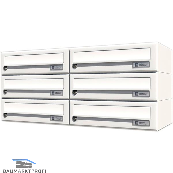 JU Hausbrieffachanlage 6-teilig, 750 x 330 x 280 mm, Stahl weiß RAL 9016