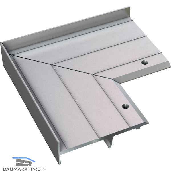 Zweiteilige Eck-Fixierung der Platten. Der 5 mm starke Eckwinkel verhindert die Kippbewegung der in der Terrassenecke platzierten Platte bei Kantenbelastung.