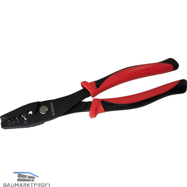 Für Aderendhülsen und nicht-isolierte Kabelschuhe.Trapezpressung, mit Abisolier- und Schneidvorrichtung.