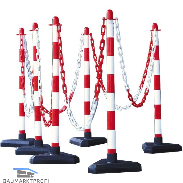 Lieferung inkl. 6 Kettenständer, 10 m Kunststoff-Kette und je 10 Verbindungsglieder und Einhängehaken.