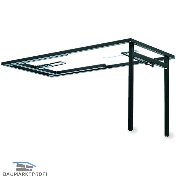 Tischgestell aus Stahlblech der Güte S235JR. Dies ist ein warmgewalztes Stahlblech, das sich durch gute Verformbarkeit auszeichnet. An den Oberflächen sind neben der stahlgrauen Farbe auch Blautöne bzw. Flammenkonturen zu erkennen. Neben diesem Farbverlauf im Grundmaterial kann es durch unterschiedlich hohe Kohlenstoffanteile im Grundmaterial zu Einprägungen in der Oberfläche kommen, die jedoch nicht zu 100 % in der Verarbeitung herausgeschliffen werden können.
