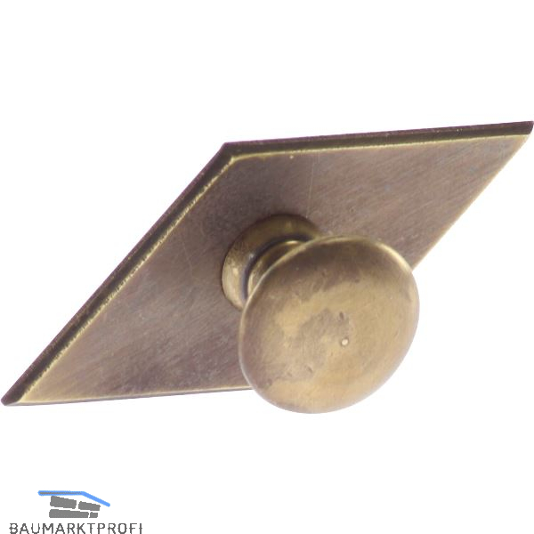 Knopf Karo mit Schild Knopf-ø 25 mm, Breite 68 mm, Höhe 35 mm, Messing patiniert