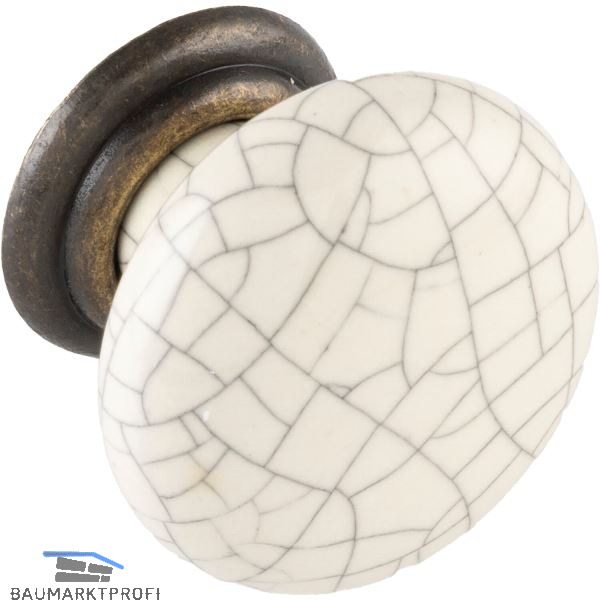 Knopf Tenem ø 34 mm, Keramik beige/Zinkdruckguss messing antik
