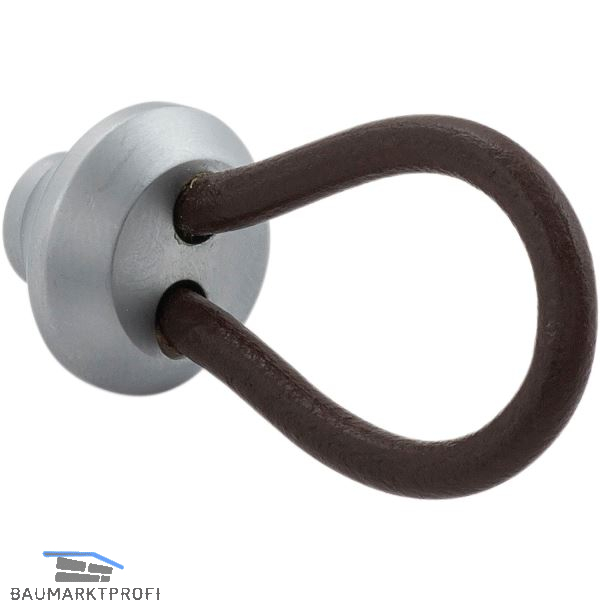 Material: Leder Oberfläche: dunkelbraun/verchromt matt Breite (mm): 24 Höhe (mm): 20 Tiefe (mm): 52 Sockel: Ø 10/20, Tiefe 14 mm Ausführung: Leder-Ø 4 mm